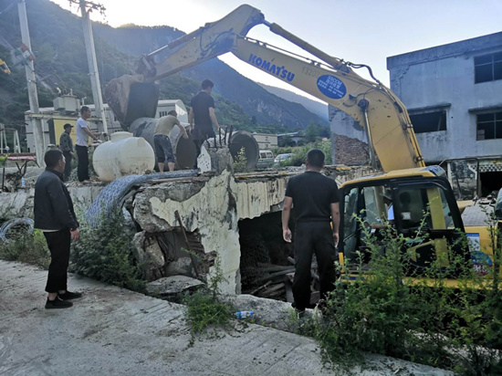“抢险团”由分管安全生产的副乡长王驰带领的乡干部和抢险机具的师傅们组成。他们勇敢、无畏,负责清除阻断道路的泥石流、阻碍通行的落石、恢复改变流向的河道等。