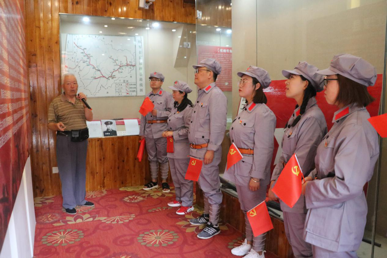 “我志愿加入中国共产党,拥护党的纲领,遵守党的章程,履行党员义务……”党支部全体党员身着红军服装在薛城宁江门前面对党旗,举起右手,庄严宣誓,一字一句,豪迈而坚定,体现了宣传战线每一位党员对中国共产党的无限忠诚,表达了宣传战线每一位党员对党的事业奉献终身的决心。随后,全体党员来到薛城博物馆,在寇仁义老人的讲解下,仔细聆听了红军长征在薛城经历的那段艰苦卓绝的历史故事,认真观看了历史图片、文字资料和珍贵文物,无不为红军锲而不舍、勇往直前的革命精神感叹。