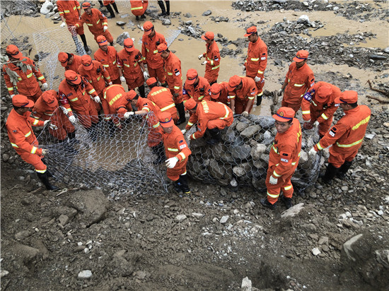 四川新闻网成都7月1日讯(通讯员 曾鹏 李晨)四川省木里县项脚乡因连日持续强降雨引发大股泥石流,造成项脚乡阿牛窝子组境内山体滑坡、道路中断、大面积农作物受灾,村民房屋、集中安置点被淹没,受困群众急需救援。 7月1日上午,四川省森林消防总队凉山支队闻讯派出木里大队56名指战员紧急赶往救援。 10时,队伍到达项脚乡阿牛窝子,与项脚乡书记游昊对接后,受领了在河道危险区域利用铁丝笼子加固河堤的任务。任务受领后,木里森林大队先对河道进行了勘察并协调挖掘机疏通河道后,再组织队员用铁丝网装上石头,在洪水流向老百姓住房的缺口位置,由北向南顺河道左侧加固河堤。 截至17时,森林消防员利用4车铁丝网,沿河道左侧加固高3米的河堤200余米。(图由四川森林消防总队提供) |