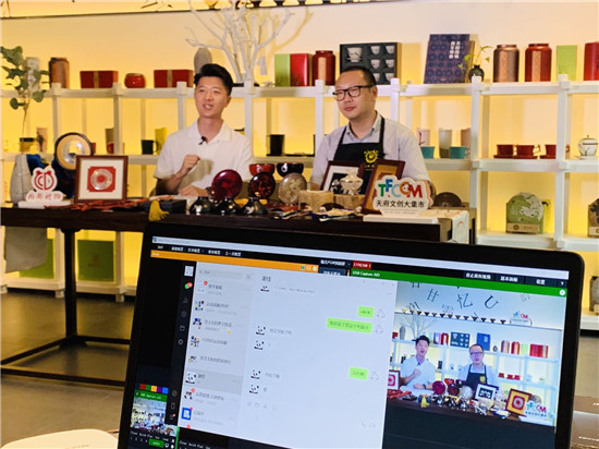 活动上,在网红主播的带领下,成都漆器厂厂长王岳峰,四川省非物质文化遗产代表性传承人、四川省工艺美术大师刘涛,原织蜀锦主设计师王钰宁和三木三舍手作工作室主理人之一曹月等纷纷讲述了文创产品背后的创作理念、文化内涵、制作工艺和青羊故事,通过看度、百度等直播平台为青羊文创产品进行直播带货,开展宣传互动,雕银丝光书签、明月村茶树灯、蜀锦领巾、植物染团扇等青羊文创特色“好礼”受到了网友追捧。两小时的直播时间内,共吸引27.4万人次在线观看。