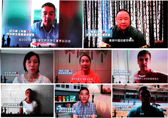 世羽联主席拉尔森、中国羽联主席;奥运冠军、世界冠军获得者和中外嘉宾的视频祝福