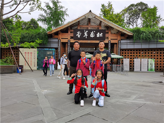 在草小师生的陪同下,得荣师生还参观了省博物馆、金沙遗址博物馆,体验蜀绣和竹编非遗课程,感受千百年来天府之国积淀下来的人文魅力。格绒洛布校长告诉记者:“感谢青羊援得工作队的精心组织和草堂小学的细致安排,这次青羊之旅,草小之行,让高原孩子们深深感受到了诗歌文化的美好,希望得荣县更多的孩子能喜爱中华优秀传统文化,传播诗歌文化,在中华经典文化的浸润中成长。”(图片由青羊区宣传部提供)