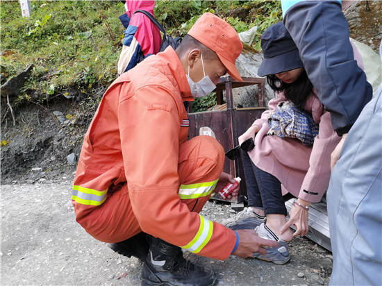 四川新闻网成都10月2日讯 国庆中秋双节同日,本是难得一遇的好日子,可对在四川省甘孜州稻城亚丁和海螺沟等景区有高原反应和崴脚的三位游客来说,却心有余悸。 如果没遇上景区防火执勤的森林消防员和防火宣传车,出现心慌气短、呼吸困难、全身乏力的两位高反游客和一个不慎崴伤脚踝的女游客能不能按时安全返回酒店,一切尚未可知。 年迈的老严重缺氧消防员第一时间给老人吸氧 12时20分,一位年过八旬的老人在海螺沟风景区索道售票处附近感到心慌气短、呼吸急促,就让亲属搀扶着向四川省森林消防总队甘孜支队雅江大队的森林防火宣传车求助。看到求助信息的雅江森林消防大队执勤队员,立即跑了过来,将老人扶到车上,拿出常备的应急氧气瓶帮助老人缓解症状的同时,联系景区医护人员前来救治。 景区医护人员抵达后,对老人做了简单的检查和问询,了解到老人从地处成都平原的彭州长途奔波来到海拔3700余米的海螺沟,身体感到非常吃力,加之老人年事已高,走到索道售票处时高原反应愈加明显,幸而遇到防火执勤的森林消防员及时拿出氧气,让老人呼吸逐渐平稳,身体指标趋于正常。 继续观察20分钟,老人却无缺氧状况后,森林消防员才护送老人及家属离去。 消防员为脚崴的女游客简单处理受伤部位 16时50分,在稻城亚丁景区旅游的刘女士在牛奶海景点1.5公里处不慎崴伤左脚脚踝,正在景区执勤的四川省森林消防总队甘孜支队乡城大队森林消防员黄小川与洛绒银巴接到求助信息后,立即赶了过去,对其进行简单处理后,轮流背了两个小时将游客安全送到摆渡车乘车点后,才继续开始执勤。 与此同时,乡城森林消防大队另一路执勤人员正在紧张的抢运一名脸色苍白、呼吸急促、全身乏力,已不能自主行走的高原游客。指导员徐嘎嘎和班长刘浩文一边为游客供氧缓解高反症状,一边用担架抬着游客赶往1小时路程外的洛绒牛场医疗站。 为防止游客情况恶化,徐嘎嘎联系景区负责人,协调车辆前往医疗站做好进一步检查治疗的准备。 抵达洛绒牛场医疗站初步检查治疗后,应游客朋友要求,景区将高反游客送到山下做进一步检查。 据悉,四川省森林消防总队国庆中秋期间已进驻到27个景区,55个乡镇、社区进行景区执勤、防火宣传和防火巡护,防范化解森林草原火灾隐患的同时,为长假期间外出游玩的百姓保驾护航。(图文由四川省森林消防总队提供) |