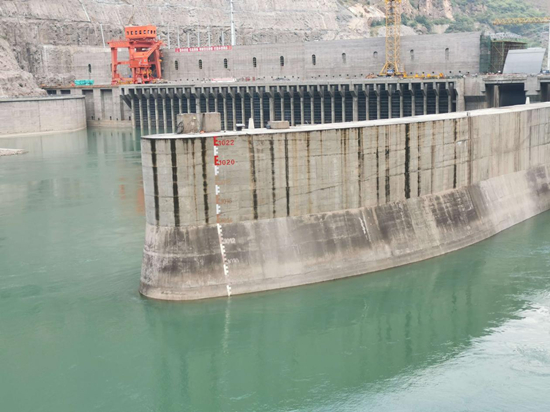 此次蓄水,主要利用河床3个泄洪表孔进行调控,蓄水量约0.587亿m³,计划蓄水时间8~9天,分为三个阶段进行。第一阶段:蓄水开始时,起调水位为1006m。关闭其他泄洪设施,保证最小生态下泄流量不低于480m³/s,通过3天时间,将库水位蓄至1015m附近。第二阶段:蓄水监测观察期,在2天的观察期内,通过表孔闸门开度调整,使水库水位控制在1015m附近,观察大坝渗漏、沿江库岸稳定情况。第三阶段:通过控制闸门开度,水库水位将在3天左右上升到1020m附近,完成蓄水计划。
