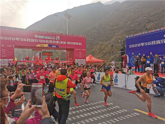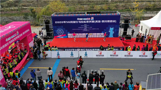 四川新闻网成都11月14日讯(朱梦琪 通讯员 陈科)11月14日9时,“幸福羌年•吉祥理县”2020年56民族行马拉松系列赛(羌族•四川理县站)在桃坪羌寨鸣枪起跑。