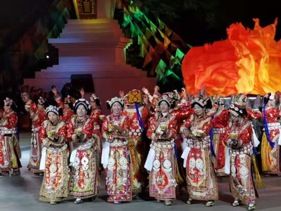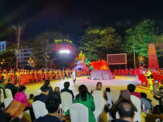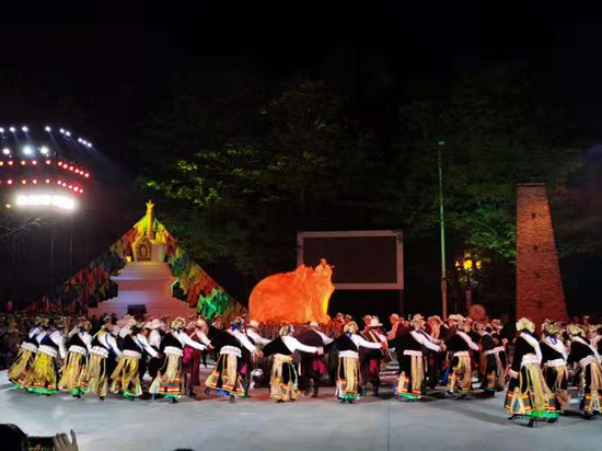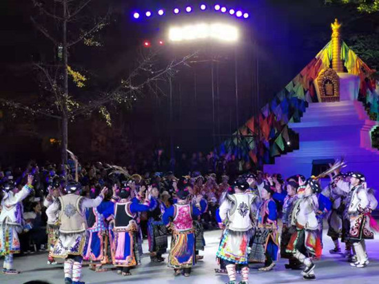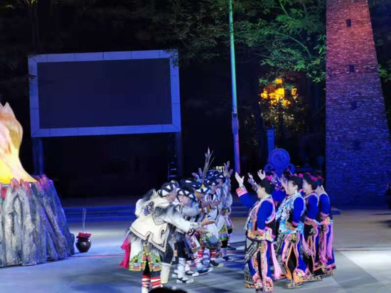 在随后的文艺演出中,蒲溪羌族锅庄《热嘎咪咪》在向人们展示了羌族这一古老民族悠久的历史文化内涵的同时,也在质朴的旋律中用虔诚的舞步祈求家乡风调雨顺、家庭和谐美满;五屯藏族锅庄《齐啦扎日热尼》不仅展现了藏族“五屯文化”传统习俗与歌舞艺术,更述说了如今生活在这里的藏族人民的幸福生活;最后,在藏羌锅庄《跳吉祥》欢快的曲调中,藏、羌演员们邀请远道而来的宾客,一同加入狂欢的队伍,绕着熊熊的篝火,跳起欢快的理县藏羌锅庄,共同欢庆即将到来的羌历新年,直至尽兴而归……