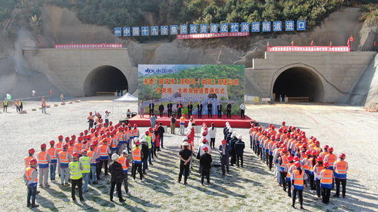仪式上,中国十九冶永勐高速公路项目经理曾梦川介绍了忙岗坝、大岭岗隧道的基本情况,并汇报永勐高速公路项目的工程进度情况。蔡仲斌代表中国十九冶向永勐高速公路首批两座隧道的贯通表示热烈祝贺,向参加永勐高速公路项目建设的“西部铁军”将士表示亲切慰问,向长期关心支持中国十九冶永勐高速公路项目的各级领导和朋友表示感谢。他指出,在新冠肺炎疫情影响下,中国十九冶永勐高速公路项目部坚持“一手抓疫情防控、一手抓复工复产”,并通过开展“比学赶超”等形式多样的劳动竞赛,以不懈的努力实现了忙岗坝、大岭岗两座隧道的同步贯通,为后续隧道、桥梁施工树立了榜样,打下了基础。他表示,中国十九冶将继续发扬“一天也不耽误、一天也不懈怠”朴实厚重的中冶精神,周密部署、精心组织,安全、绿色、优质、高效完成后续施工生产任务,切实践行“西部铁军、业主放心”的庄严承诺。