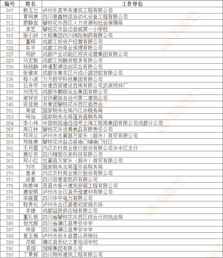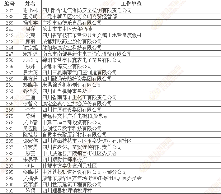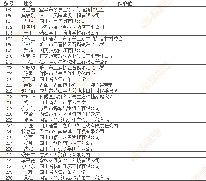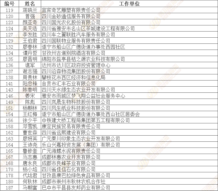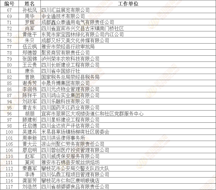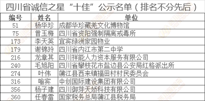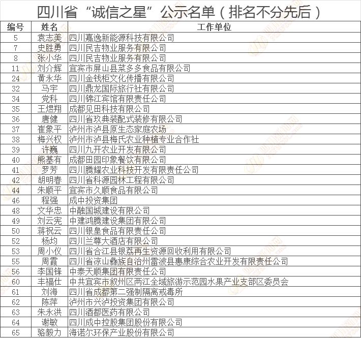 四川省“诚信之星”公示名单