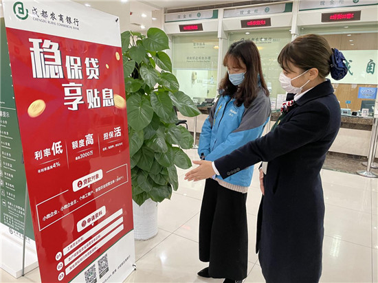 12月9日,成都农商银行郫都红兴支行的大厅秩序井然,工作人员正在为客户讲解贷款产品