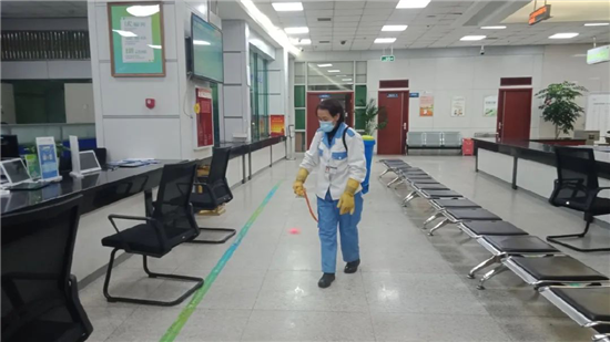 温江区政务服务中心日均接待群众3000余人,为了给办事群众提供安全健康的办事环境,温江区政务中心在上下班前后分别进行一次全面消毒。重点对大厅的出入通道、电梯间、卫生间、群众等候区等区域进行消毒。