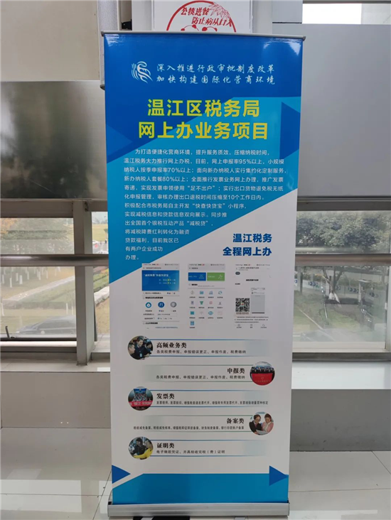 为避免人员扎堆、聚集,减少人员流动,有效防控疫情。温江区政务服务中心积极宣传引导群众通过“网上办”、“就近办”等方式办理业务。