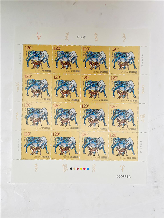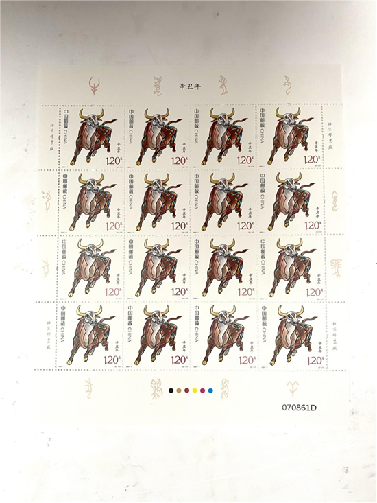 2021年1月5日中国邮政发行《辛丑年》特种邮票一套2枚,邮票图案名称分别为:奋发图强、牛年大吉,全套邮票面值为2.40元。计划发行量分别为邮票一图4460万枚,邮票二图4280万枚,版式二250万版,小本票630万本。
