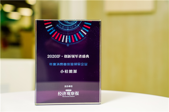 本次活动由《经济观察报》主办,共设有“年度创新领军企业”、“年度创新领军人物”两个榜单。在活动现场的颁奖仪式上,小桔能源凭借小桔充电“星享站”创新案例荣获“年度消费者体验领军企业”奖项。