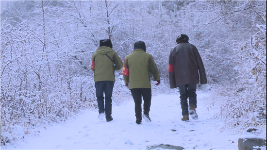 1月26日,川西303场的护林员潘小红像往常一样准备好森林防火宣传单便背上书包准备去巡山了。在正式巡山之前她每天都会在指定的打卡点进行打卡,进入林区后潘小红开始对山里设置的标示标牌进行检查,查看是否有损坏或者需要进行更换,同时也会巡视林中是否有人使用明火或乱砍乱伐等违规行为。“每天我们出来每到一个卡点都会进行打卡,打完卡之后,我们就会去巡视我们的标识标牌,在国有林区看一下有没有毁林开荒、偷拉盗运木的情况发生,如果遇到有村民进山,我们就会对他们进行宣传,告诉他们禁止一切野外用火”,潘小红介绍着每天的工作,由于近日气温偏低,理县普降大雪,山上的道路被厚厚的积雪覆盖,前行的道路也变得比以往更难前行,洁白的雪地上留下了护林员们巡山的足迹,而眼前这些景象潘小红说是他们习以为常的。据潘小红介绍:“近年来,县上对群众的护林防灭火宣传很全面,群众的防火意识也提高了。我们在巡完山后还会与村上森林的管护人员一起入村入户对村民进行护林防灭火宣传”。