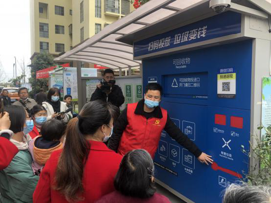 四川新闻网成都2月26日讯 (通讯员 章宇)“嘭”的一声,伴随着一阵火光,魔术师手中的鸟笼瞬间消失不见,只见满天的纸条飞舞。然后,集拢纸条后装入一个垃圾袋,一下子变废为宝,变出3条围裙送给现场的居民,赢得阵阵掌声。这不是普通的文艺演出,而是一次垃圾分类主题宣传表演。2月26日,为庆祝元宵佳节,积极响应2月24日《成都市生活垃圾管理条例》推动全市生活垃圾分类工作动员电视电话会议市委副书记、市长王凤朝讲话号召,成都市双流区永安镇在凤凰家园举办了一场贯彻实施《成都市生活垃圾管理条例》启动仪式,宣传形式多样,气氛热烈。 本次活动主题为“绿凤凰护生态 垃圾分类动起来 幸福美好生活在”,活动由双流区永安镇人民政府主办,永安镇凤凰社区居委会承办,双流区益行社会服务中心、双流区仁人社会工作服务中心、成都智行天下文化传播有限公司协办。永安镇机关各科室、各村(社区)、各相关驻镇单位代表参加了活动。活动通过文艺节目展演、有奖主题游园活动、垃圾回收智能机柜“扫码投放垃圾变钱”模式现场垃圾分类投递体验等方式进行了生动宣传贯彻。
