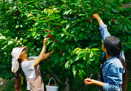 四川新闻网成都5月17日讯(通讯员 谭瑾若)初夏五月,恰是汶川甜樱桃集中成熟的大好时节,前来体验采摘乐趣的游客更是络绎不绝。与往年相比,今年汶川的甜樱桃产业更具特色,在“农业+科技+文化+旅游+产业”的创新发展中,如今汶川的3万亩甜樱桃正探索着营销的跨界。