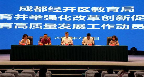 四川新闻网成都7月9日讯(李仕丽) 为落实中央和省、市、区关于深化改革创新相关精神,将教育教学改革创新往深里推、往实处干,以创新解决群众反映强烈的突出教育问题,办人民满意教育,7月8日,成都市龙泉驿区教育局召开“深化五育并举,强化改革创新,促进区域教育高质量发展”工作动员会,发布《关于进一步深化五育并举 强化改革创新促进区域教育高质量发展的实施意见》,针对问题实际,列出改革清单,倡导自主改革探索,推动教育高质量发展。