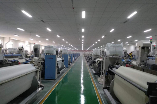 该公司采用喷射气流牵引纬纱穿越梭口织机,具有入纬率较高、操作简单、效率高等优点,其生产的工装布、防静电布等为中高端产品,客户涉及军队、警察及一般工人群体。