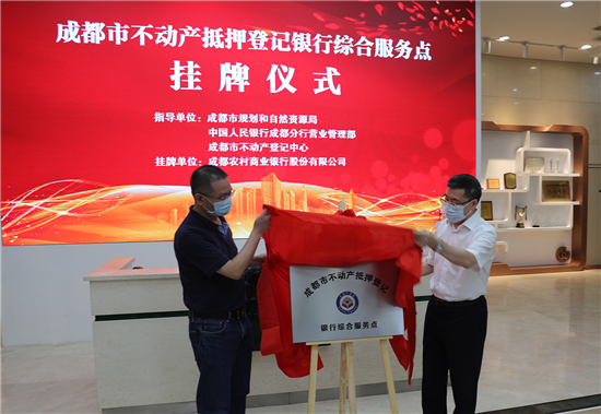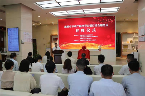 四川新闻网成都8月31日讯(付道金 通讯员宋从雅 罗雪莉) “不动产抵押登记银行综合服务点,依托四川银政通信息服务平台,可以为客户在线办理不动产抵押权登记、注销以及不动产登记信息查询等业务。以后客户在银行办理抵押贷款,不需要再拿着各种资料往返于银行、不动产登记中心,实现了让‘数据多跑路、群众不跑腿’,金融服务效率得到大幅提升。”这是8月31日下午,在成都农商银行举行的成都市不动产抵押登记银行综合服务点挂牌仪式上,人民银行成都分行营业管理部有关负责人表示。