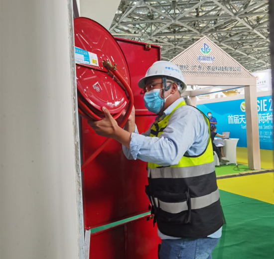 项目管理人员检查消防设备 黄浩烽摄