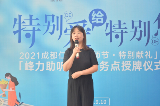 康语阳光听力语言康复中心陈华丽主任作为特教老师代表,也在活动中分享了一些她的感言。“今早我陆续收到一些家长和孩子发来的祝福视频,视频中孩子向我说到‘陈妈妈,祝你节日快乐,你辛苦了!’当我看见这些视频,真的非常感动!孩子们从不会说话,到现在能够清晰、流畅、充满感情地向你说出一句祝福,我觉得这就是作为康复特教老师来说最大的成就感。”