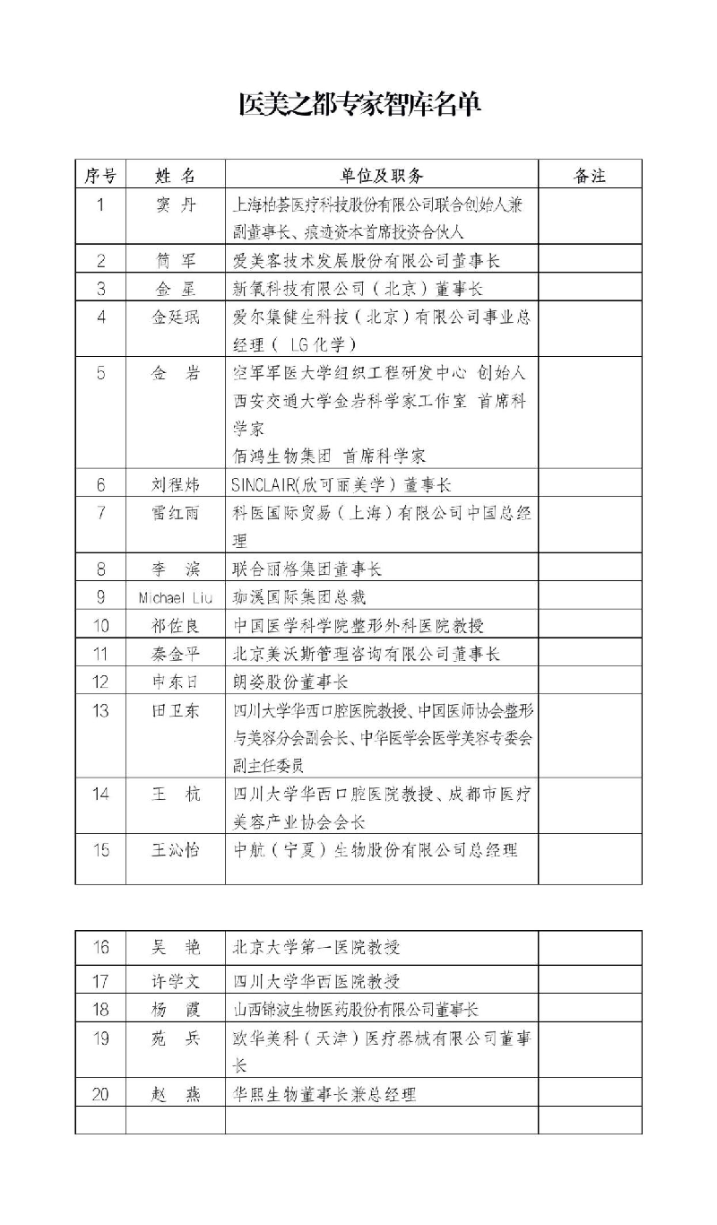 为确保“医美之都”高品质发展,会上,成都市医疗美容产业协会牵头成立“医美之都”专家智库,收录了20位行业专家。