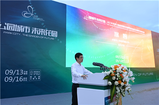 成都市人民政府副秘书长涂智宣布2021年公园城市国际花园季暨第四届北林国际花园建造周正式开幕。
