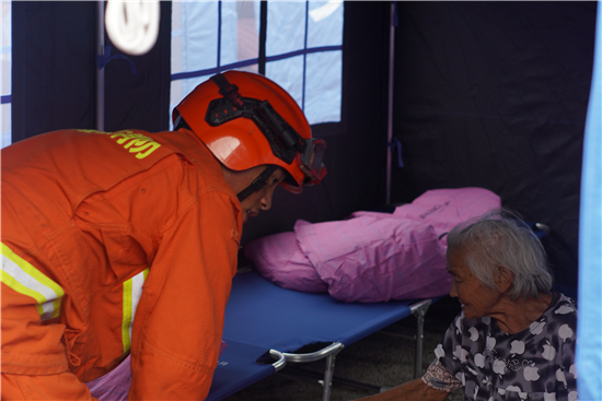 “奶奶,你不要担心,在这里你就好好休息,有什么需要就给我们说。”在一处刚搭建的帐篷里,这位刚刚下队实习不到三个月的藏族小伙尼玛生格在帐篷里暖心的安慰着老人。