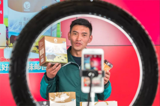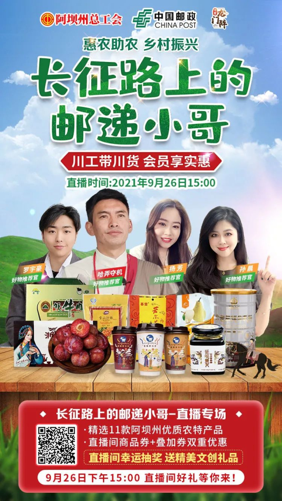 在本场直播中,中国邮政集团有限公司四川省若尔盖县分公司乡邮投递员哈弄夺机作为主播参与。