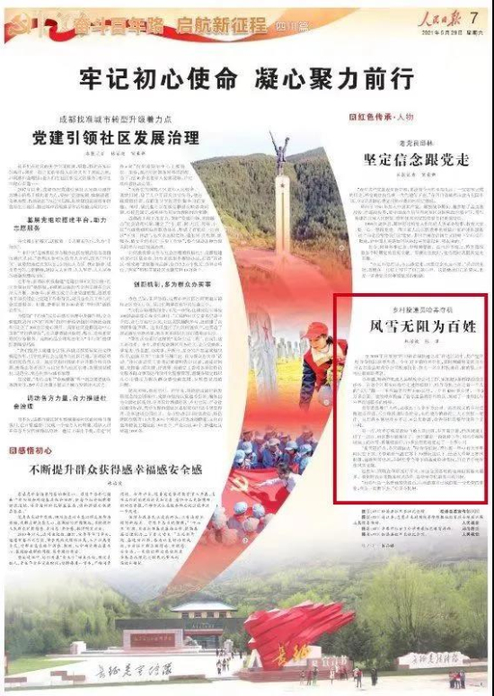 5月29日,《人民日报》7版以《风雪无阻为百姓》为题,报道了哈弄夺机的先进事迹。