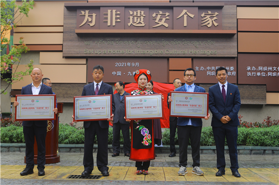 值得一提的是,阿坝州还对首批州级“非遗集镇”、“非遗村寨”、“非遗街区”进行了集中授牌。马尔康市沙尔宗镇、、松潘县进安镇、九寨沟县南坪镇获得阿坝州首批州级“非遗集镇”的荣誉;金川县马奈镇马奈村、壤塘县南木达镇南木达村、汶川县绵虒镇羌锋村、理县古尔沟镇甘堡村获得阿坝州首批州级“非遗村寨”的荣誉;若尔盖县唐克镇白河社区、茂县古羌城、九寨沟县九寨·鲁能美丽汇商业街获得阿坝州首批州级“非遗街区”的荣誉。