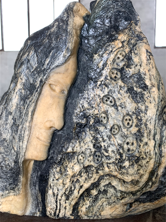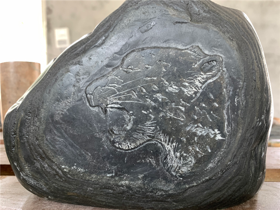 在经营过程中,负责人邹玉佩不断探索创新,利用自己的一些绘画功底,在这些石头上创作绘画,并且他还通过视频教学自学雕刻,为这些奇石花盆“穿”上了漂亮的新“衣裳”。