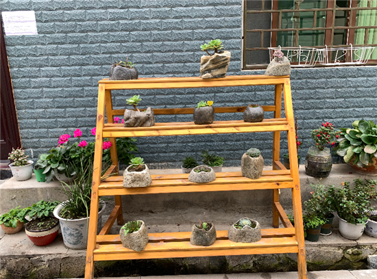 走进通化拾柴文创园,一盆盆造型各异的奇石花盆映入眼帘,有的是星星点点的花岗岩,有的是通体一色的玄武岩,还有一些纹路浑然天成的“奇石”,搭配上多肉、石斛等植物,就是一件天然雕饰的艺术品。
