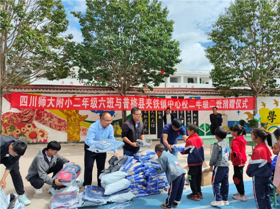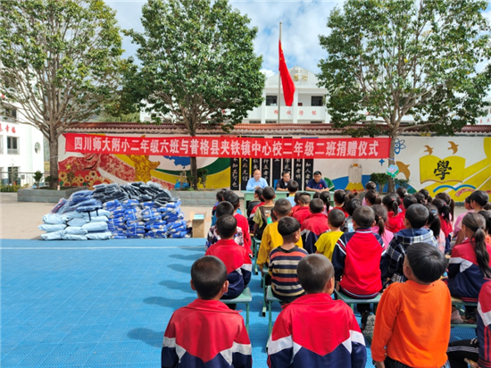 四川新闻网成都10月14日讯 习近平总书记指出:“教育是对中华民族伟大复兴具有决定性意义的事业”。不论是在脱贫攻坚时期,还是在全面消除绝对贫困后的巩固拓展脱贫攻坚成果同乡村振兴有效衔接时期,教育都是增强落后地区和群众内生动力、发展能力的关键举措,是阻断贫困代际传递的重要途径。对于身处凉山腹地的普格县小兴场来说,夹铁镇中心校与千里之外的四川师大附小因为同为少年的赤诚之心而意外结识,开展了一次以班为单位的帮扶捐赠活动,共话了一段狮山少年和凉山少年的美好情谊。