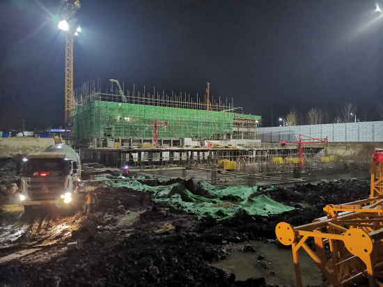热血书劲旅,实干铸铁军。为确保服务质量,更近一步深化双方的合作情谊,项目施工伊始,普吉-团结厂便立即召开了动员大会,制定了详细的服务方案,一线在岗职工全员行动,各司其职,科室长全程参与到质量巡检及生产调度中去,厂班子每晚均有2人值班,一个守现场,一个守厂站,四个厂班子轮流值守,对保供过程和服务过程全方位监控,严禁任何环节掉链子。经过一天两夜的奋战,整块筏板浇筑作业圆满完成,全程无掉档、离析等情况,项目方赞不绝口,客户满意度百分之百。