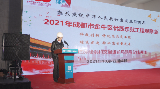 四川新闻网成都10月25日讯(通讯员 马俊卿)10月22日,成都市金牛区住房建设和交通运输局在中建新疆建工西南公司承建的金牛现代都市工业港4号项目举办2021年度成都市金牛区优质示范工程观摩会,金牛区住房建设和交通运输局党组成员、副局长邓燕出席会议并讲话。