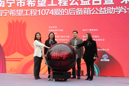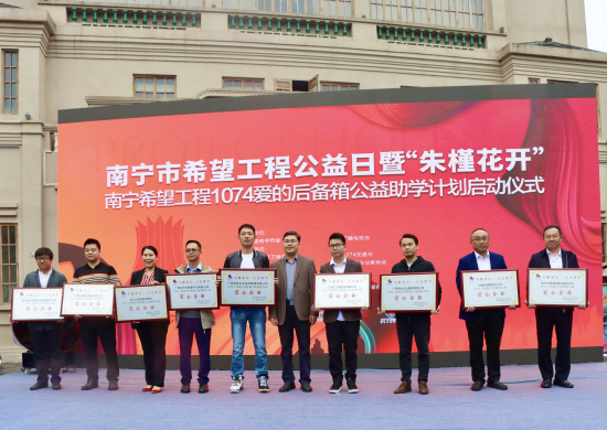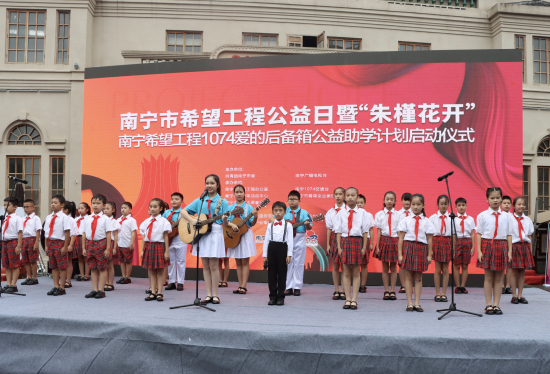 启动仪式上,进行了青春歌曲演唱、公益演讲倡导,共同启动“朱槿花开”——南宁希望工程1074爱的后备箱公益助学计划。据悉,南宁市希望工程实施以来,累计筹集各类款项7630多万元,其中,“圆梦行动”累计筹集助学款1561多万元,资助困难学生3450名,建设“希望书屋”,“希望厨房”,“温暖浴室”,为困难家庭学生就学提供帮助。