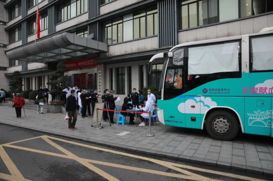 在今天的活动现场,虽然有微微细雨,但自愿献血的民警职工却热情高涨,陆续到达指定献血点后,在成都市血液中心工作人员的指引下,大家秩序井然地完成了体温测量、填表登记、量血压、化验和献血。