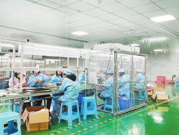 巴中临港产业园里,四川永润欣科技有限公司二楼车间内,工人们正在组装手机。