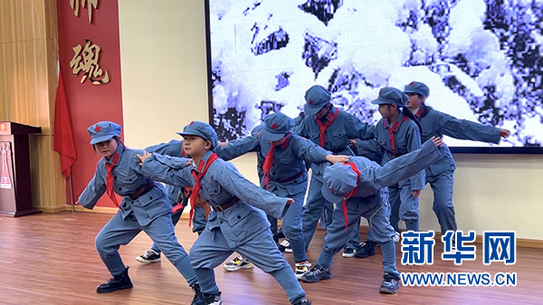 盘州市第八小学党史教育课本剧《丰碑》表演。新华网 蔡连素 摄