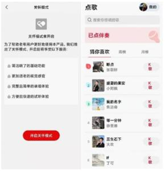 进入关怀模式前后对比 3.腾讯新闻推出关怀版APP 腾讯新闻关怀版APP对列表、文章页等多个场景,提供特大号字体;在文章页可一键听AI读新闻;交互去繁从简,例如在导航默认配置了主版老年用户访问最多的品类(如“健康”),省去了需要手工拖拽定制的麻烦。 同时,为了提升对比度,腾讯新闻关怀版优化了热点精选和视频模块,尽可能减少文字压图的情况出现。页面排版与腾讯新闻客户端一致,降低用户的学习成本。 4.腾讯地图上线独立关怀版 腾讯地图上线独立关怀版,软件功能精简、界面清爽,提供地址搜索、步行算路与导航、公交地铁算路、实时公交、叮当语音助手等功能,以及接入无障碍卫生间、无障碍电梯地址等使用体验。关怀版提供了更大的文本字号、更大的交互按钮、更高的颜色对比度,减轻用户的阅读负担,并可适配手机读屏功能,支持朗读模式。 5.全民K歌上线关怀模式 全民K歌上线关怀模式,优化了整个K歌流程,从选歌、K歌方式到录歌、发布作品;在UI方面优化了产品的视觉体验,使得产品更利于老年人用户使用;试听功能优化了试听流程,方便老年人试听广大用户的作品;同时简化一些基础功能的使用,方便老年人用户使用,如登录、搜索等,并可适配手机读屏功能,支持朗读模式。
