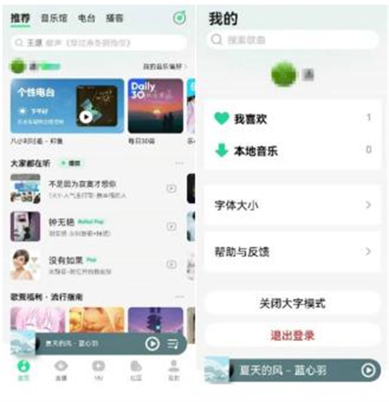 6. QQ音乐降低使用门槛 QQ音乐增加“大字模式”,帮助老年人以及其他障碍人士在便捷使用QQ音乐产品,同时最大限度保留与广大普通用户一同互动交流,共同欣赏音乐的可能性。QQ音乐大字模式的基本设计理念是优选出最核心的模块功能,通过对产品中常用模块进行字体放大、显示优化、扩大触控区域、进行手势操作功能适配等,方便老年人、低视力或其他视力障碍用户顺畅使用产品功能,降低使用门槛。