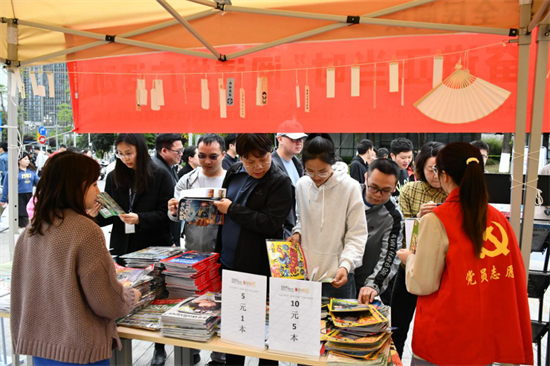 杂志义卖点也是活动现场人气最旺的区域之一。园区企业杂志铺借助此次世界读书日活动,对精美现刊杂志进行展卖,涉及科普、时尚、财经、少儿、文学、旅游等各种类别,义卖所得资金将全部用于阅读推广公益事业。杂志铺相关负责人介绍,公司致力于杂志阅读推广,杂志公益阅读。已发起了多项公益阅读推广活动,包括“杂志漂流进校园”、“寻找校园阅读推广大使”、“未来作家杯中小学生作文大赛”、“我为学生荐好刊”等10大公益品牌活动。累计漂流2.5万所学校,发出免费杂志超100万册,覆盖老师5万多名,学生500万名以上,受益人群达1000万以上。