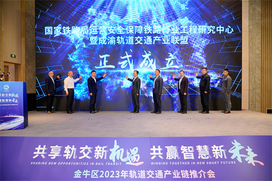 活动现场还举行了国家铁路局运营安全保障铁路行业工程研究中心暨成渝轨道交通产业联盟揭牌仪式。国家铁路局运营安全保障铁路行业工程研究中心作为国家首批铁路行业科技创新基地,是首批10个工程研究中心之一,将开展前沿引领技术、共性关键技术、现代工程技术创新,着力促进科技创新成果的工程化、产业化。2023年3月,中心正式与金牛区开展合作,未来双方将共同打造科技成果转化及产业化基地,并深化运营成渝轨道交通产业联盟,助力金牛区轨道交通产业建圈强链更上台阶。