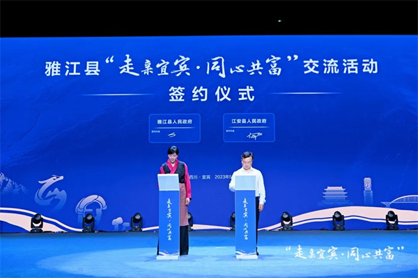 四川新闻网-首屏新闻成都5月20日讯 5月19日下午,由雅江县委、县政府和宜宾市省内对口帮扶工作领导小组办公室共同举办的“浓情宜雅·流传三江——雅江县走亲宜宾·同心共富交流活动”在宜宾市国际会议中心举行。宜宾市委常委、统战部部长陶学周,甘孜州政府副州长陈波涛出席活动。