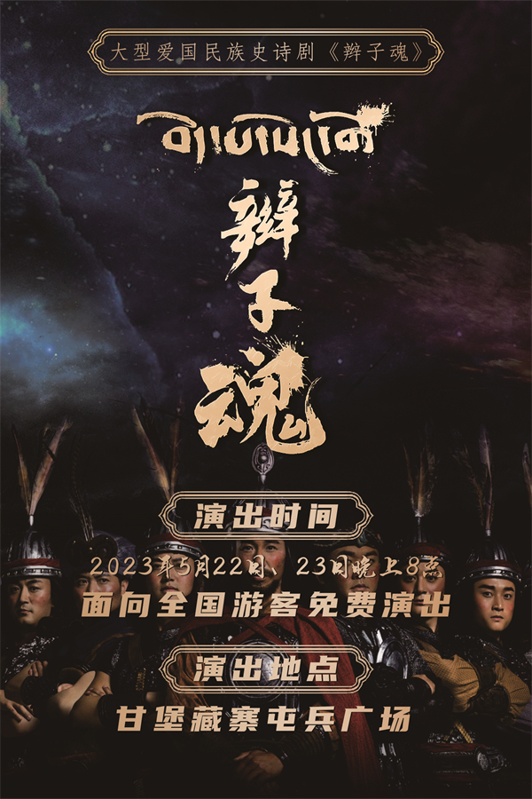 四川新闻网-首屏新闻成都5月21日讯 “不胜宁死屯军魂,马革裹尸何须还。”“辫子坟头,风马自会迎魂归。”5月22日到5月23日,由阿坝州民族歌舞团倾力巨献的大型原创民族史诗音乐剧《辫子魂》将在理县甘堡藏寨震撼开演,届时将面向全国游客免费演出。