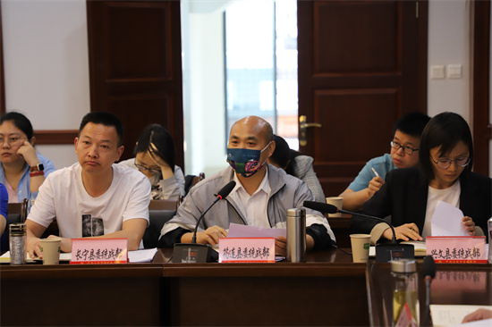 兴文县、江安县、筠连县、民盟宜宾市委等作了交流发言。三江新区党群工作部、各县(区)党委统战部,各民主党派市委会、市工商联、致公党宜宾支部分管领导和统战宣传文化工作具体负责人员参加会议。(图由宜宾市委统战部提供)