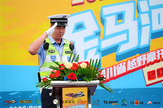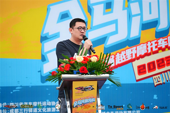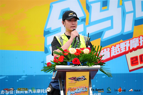 四川省汽车摩托运动协会主席对此次越野摩托车赛事进行介绍,也预祝赛事顺利进行。同时为SP7.8公里俱乐部授牌为四川省摩托车运动协会裁判员培训基地。