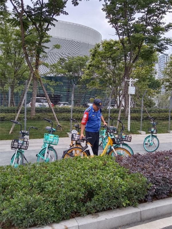 为保障好辖区内高新体育中心体育馆和电子科技大学清水河校区体育馆大运会场馆及周边市容环境,成都高新区生态环境和城市管理局会同大运场馆属地街道,共同做好场馆周边市容秩序管控、广告招牌治理、扬尘污染治理、规范共享单车停放秩序等城市管理工作。