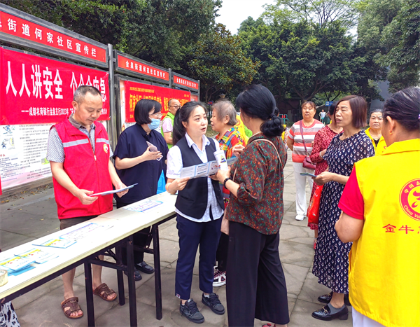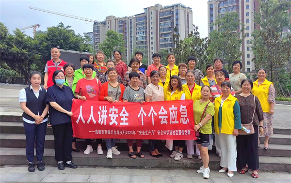 四川新闻网-首屏新闻成都6月19日讯 2023年6月15日上午,成都农商银行金泉支行以“安全生产月”安全主题宣传活动为契机,走进位于支行辖内的金泉街道何家社区安全文化广场,开展了一场全民安全知识宣传进社区活动。